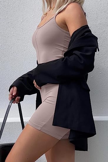 • Design: Round neck, spaghetti strap, sleeveless, tight fitting, shorts, one piece basic rompers, hip lifting, comfy fabric, adjustable spaghetti straps. This is a very cute bodysuit for women and teen girls.